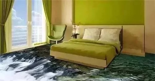 卧室、客厅坐落于悬崖溪流之上,喷流而下的瀑布,惊心动魄,逼真的3D艺术地坪,让生活空间多了一定刺激感。