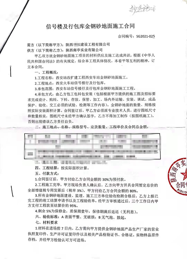 热烈庆祝我司承建的西安火车站改扩建工程金刚砂耐磨地坪顺利完工并交付使用